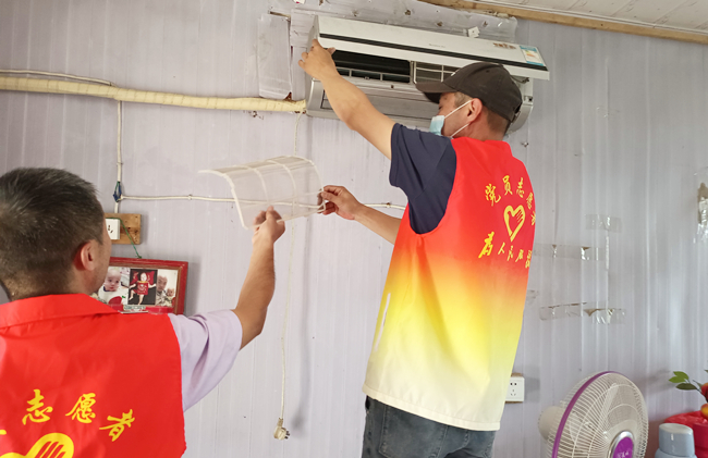 在困難老人家中,黨員志愿服務(wù)隊力所能及地幫助他們進行衛(wèi)生打掃、電器維護等服務(wù),用實際行動將溫暖送到群眾心坎上。