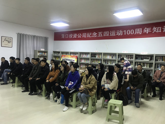 4月28日上午,青口投資公司團(tuán)委開展紀(jì)念五四運(yùn)動(dòng)100周年活動(dòng),邀請(qǐng)組織宣傳部部長作“青春心向黨,建功新時(shí)代”專題知識(shí)講座。公司副總經(jīng)理周緒祥應(yīng)邀出席活動(dòng)并講話, 37名團(tuán)員青年參加了本次活動(dòng),作為新時(shí)代的青年,要擔(dān)負(fù)起弘揚(yáng)五四精神的責(zé)任,努力工作,為公司三年攀高貢獻(xiàn)力量。 (王 偉)