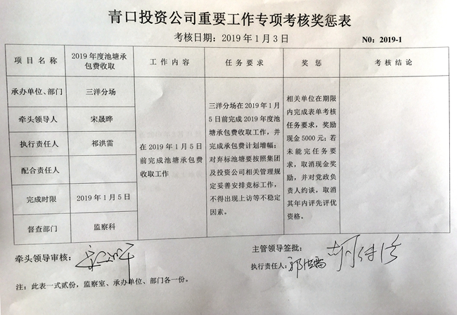 【表單考核】青口投資公司重要工作專項(xiàng)考核獎懲表