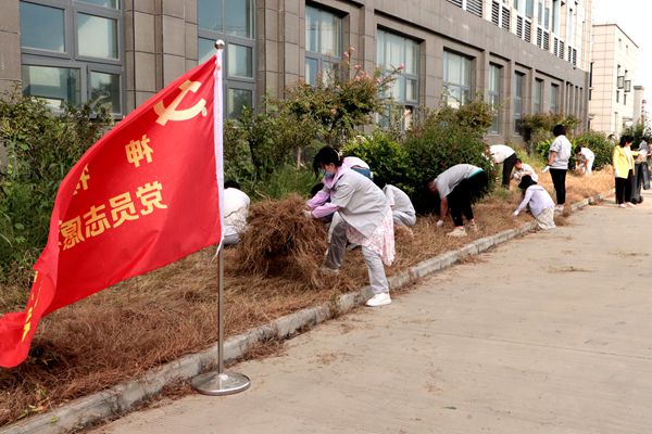 活動中,大家齊心協(xié)力,分工明確,各司其職,充分發(fā)揮不怕臟、不怕苦和不怕累的志愿者精神,認真清理辦公樓前的雜草和衛(wèi)生,以十二分的熱情全身心投入活動中。經(jīng)過一個多小時的不懈努力,辦公樓前綠化帶及道路煥然一新。