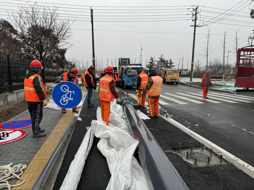 立足優(yōu)質服務,確保維護管養(yǎng)及時高效。盛達市政分公司根據(jù)公司上級交辦的重點工作,以及一季度觀摩會活動線路保障等工作,積極完善轄區(qū)主次干道、公園、廣場的市政設施,認真履職盡責,保障市政設施完善,做好下水管網運轉通暢,巡查人員冒雨堅持道路巡查,對轄區(qū)下水管網進行摸底排查,及時清理疏通堵點,對積水嚴重路段設立警示標志,并利用抽水泵等重型設備疏導積水,確保轄區(qū)不出現(xiàn)大面積積水,保障了轄區(qū)人民群眾的出行安全,一季度順利完成轄區(qū)井篦、井蓋更換安裝合計約200套;另外,友誼路交黃海大道、興業(yè)路交黃海大道、平山路交黃海大道雨水管網改造工程正在有序開展中。