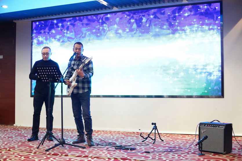 聯(lián)歡會節(jié)目豐富多彩,有獨唱、小合唱、魔術、游戲等。精彩的表演贏得了全場陣陣歡聲笑語,雖然表演很業(yè)余,但大家各個精神抖擻,充分展示了公司員工的蓬勃朝氣和奮發(fā)進取的精神。在熱烈氛圍的感染下,公司領導也紛紛上臺表演節(jié)目為晚會助興,楊善革《我愛你塞北的雪》對新年的祝福和期盼,表達了迎新年的喜悅心情。公司黨委書記、董事長、總經(jīng)理王德志一曲《南泥灣》更是唱出了公司全體員工熱愛祖國,熱愛企業(yè),立志艱苦奮斗、自力更生,決戰(zhàn)2022,打贏臺北保衛(wèi)戰(zhàn),再創(chuàng)臺北新輝煌的決心。