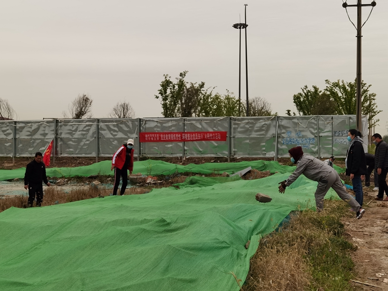 翔立分公司黨支部攜手海州灣公司黨支部對公司的車站小灘進行環(huán)境整治,為裸露在外的土地進行防塵網(wǎng)鋪設。