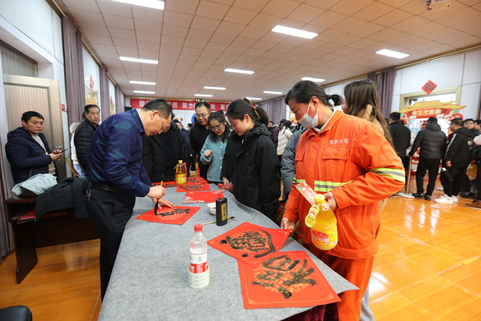 現場開展的寫“?!彼汀案!被顒樱c項目比賽同頻共振,在喜慶的音樂聲中把一張張紙紅墨香的“福”字送個每一名職工,為營造喜樂福滿的“新春賽場”增色添彩,增強職工的成就感和幸福感。(徐宣 徐工)