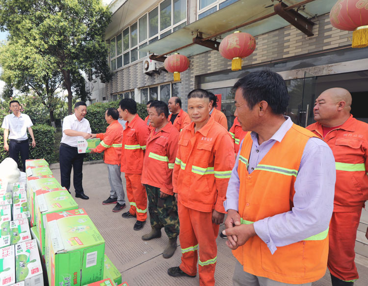 ????? 8月3日,投資公司黨委書記、董事長、總經(jīng)理馬德志等領(lǐng)導班子成員分赴基層一線,開展高溫“送清涼”慰問活動,為奮戰(zhàn)在一線的員工們送去防暑降溫物品和親切慰問。