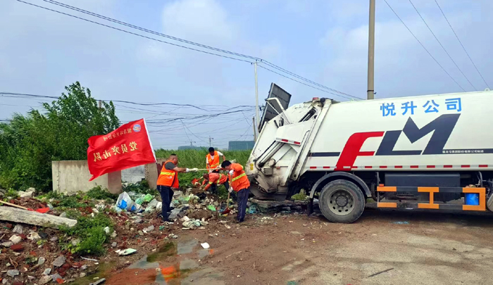 ? ? ? ?8月22日上午,室外熱浪滾滾,橙色工作服在強(qiáng)烈陽(yáng)光照耀下顯得格外引人注目。環(huán)衛(wèi)分公司黨員突擊隊(duì)第一時(shí)間加入到環(huán)境衛(wèi)生“治理”中。活動(dòng)中,隊(duì)員們沖鋒在前,不怕臟、不怕累,及時(shí)對(duì)轄區(qū)各類生活垃圾進(jìn)行清理。在轉(zhuǎn)運(yùn)各類垃圾過(guò)程中,該分公司管理人員身先士卒,積極與大家?jiàn)^戰(zhàn)在一起,經(jīng)過(guò)4個(gè)小時(shí)的連續(xù)作戰(zhàn),共清理垃圾點(diǎn)4處,清運(yùn)垃圾約7余噸。